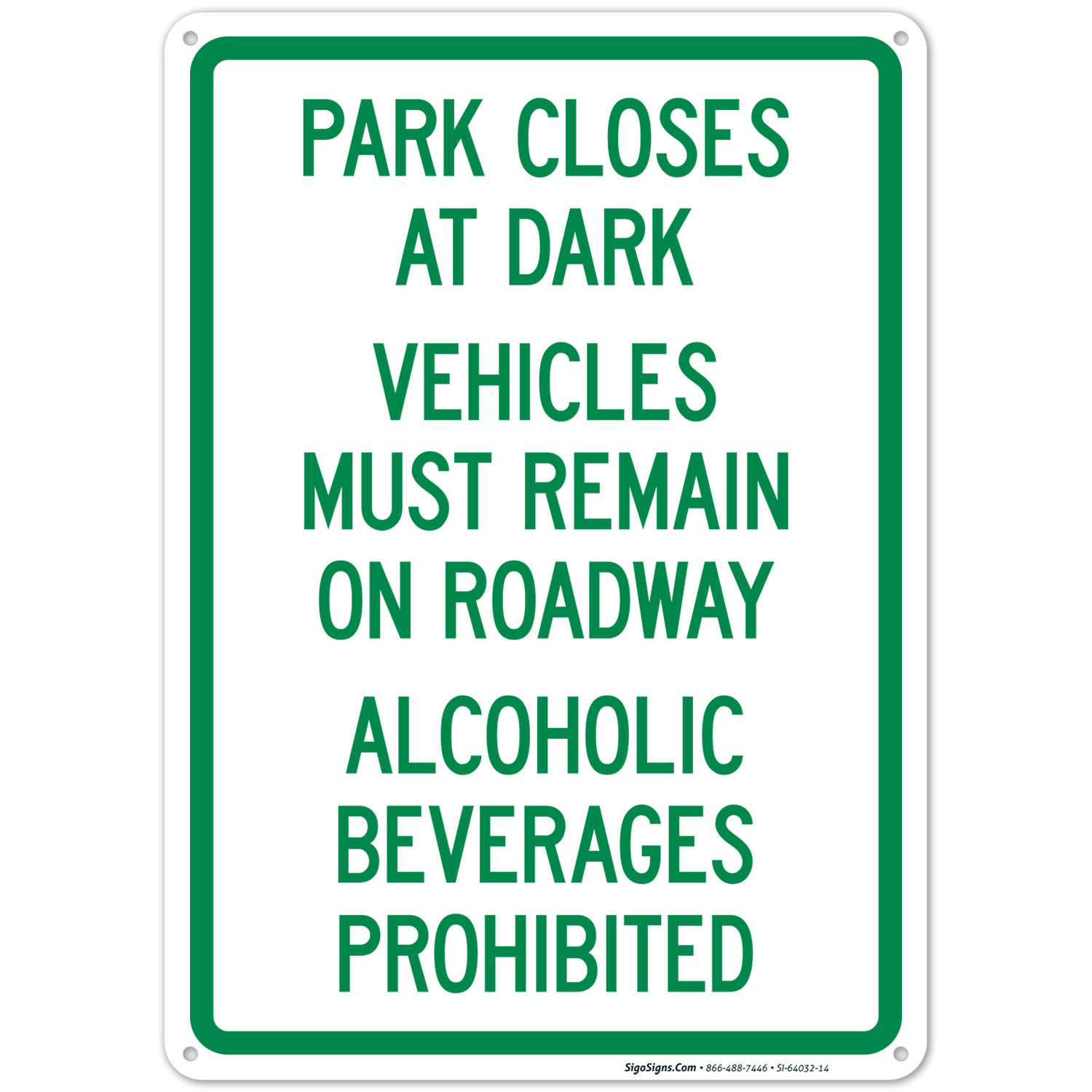 Park Closes At Dark Vehicles Must Remain On Roadway Sign