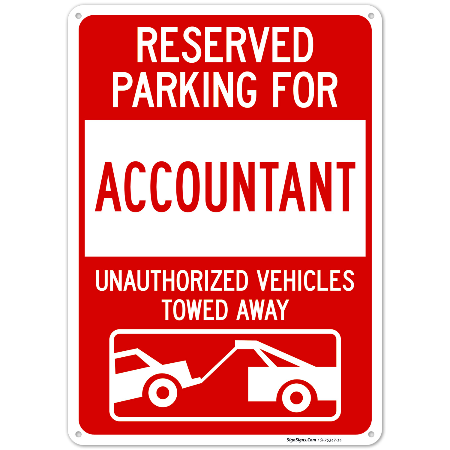 Reserved Parking For Accountant Unauthorized Vehicles Towed Away Sign,
