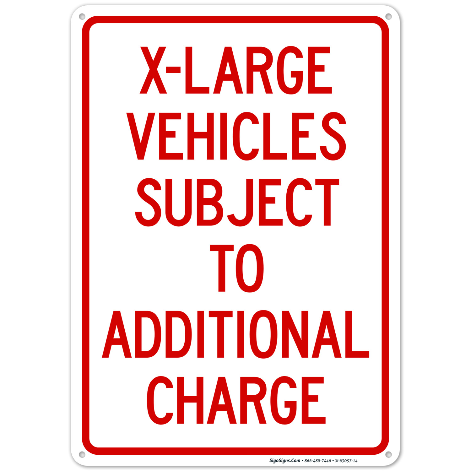 XLarge Vehicles Subject To Additional Charge Sign